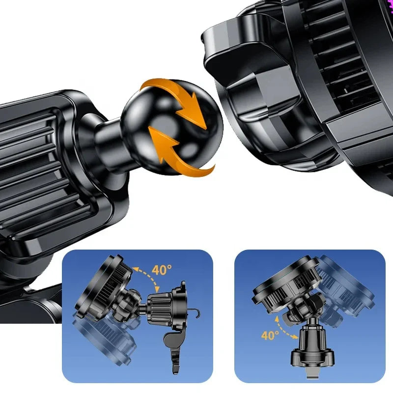 Perfectly Compatible with Horizontal & Vertical Vents: The Steel hook clip of this iphone 12-15 macsafe charger is 50% longer than the ordinary one. It’s compatible with 99% Horizontal & Vertical vents, which solves the common problems of poor compatibility and cradle easy falling off on the market. We upgrade the iPhone car holder to meet all the needs of the car vent.
